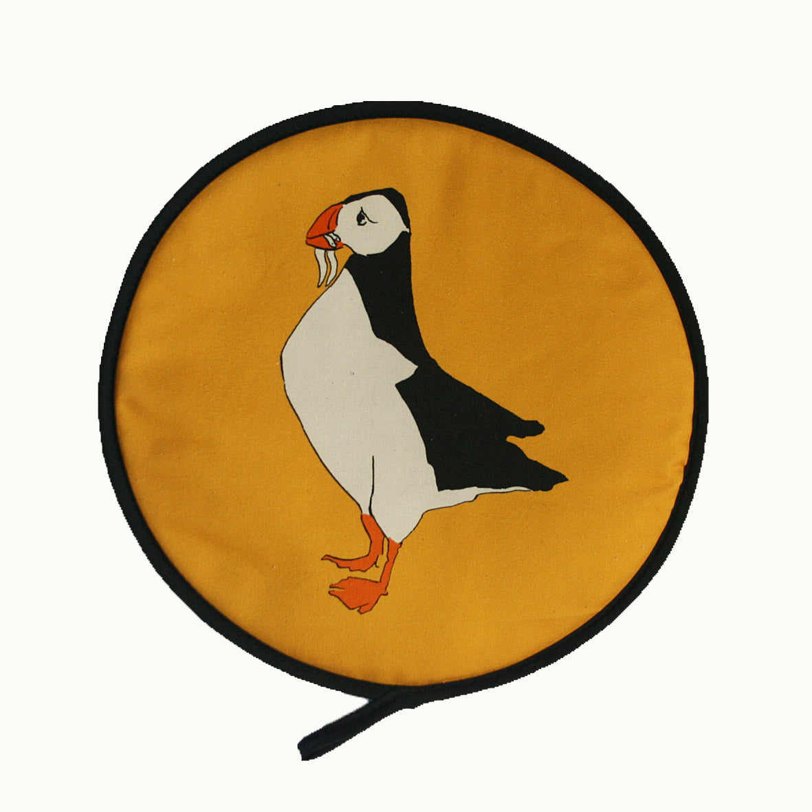 This classic Puffin set a deep mustard yellow background will really brighten up any kitchen!