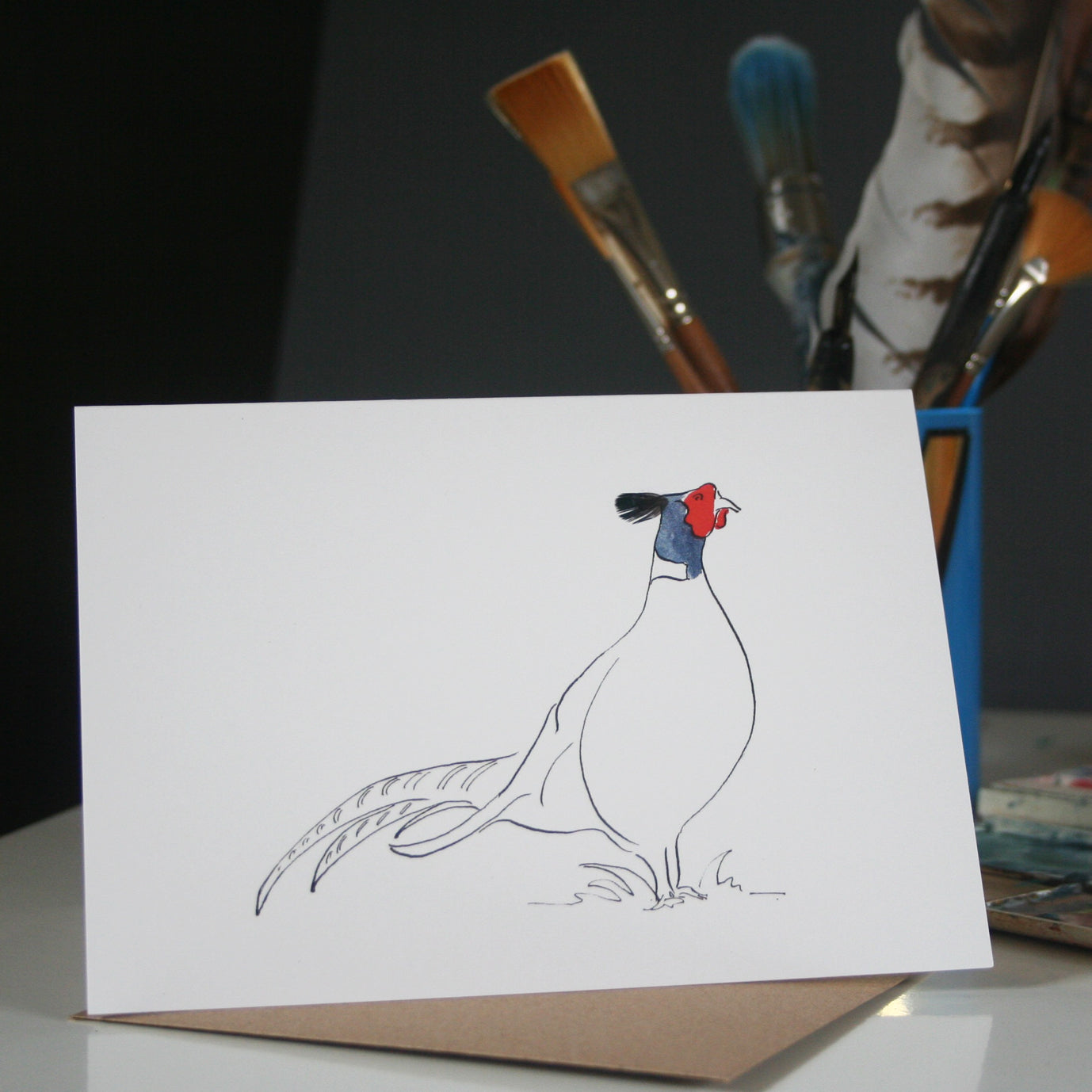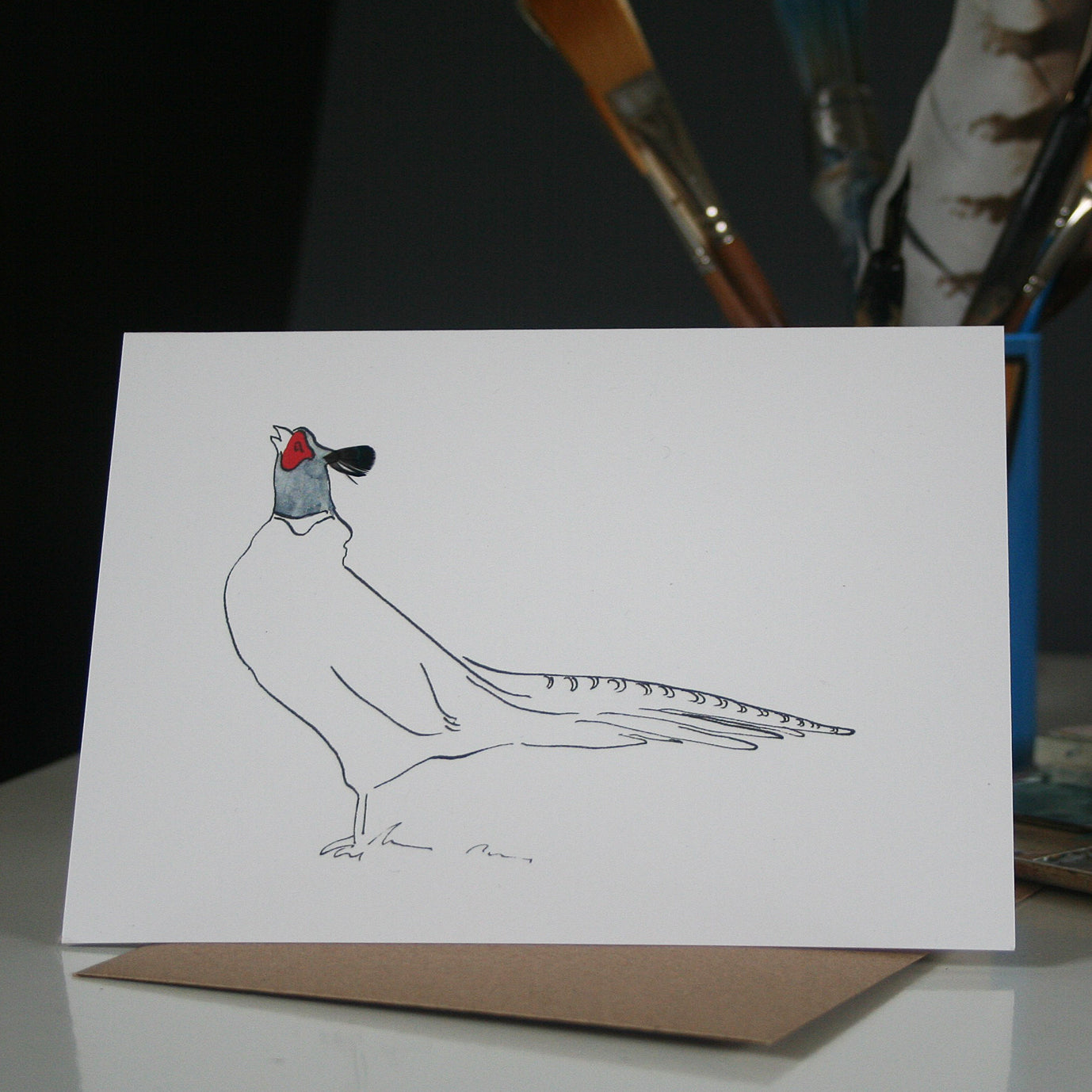 The range of pheasant cards include a wedding card. They are hand finished with real pheasant feathers and watercolour in red and grey. Great cards for thank you letters for shooting too.