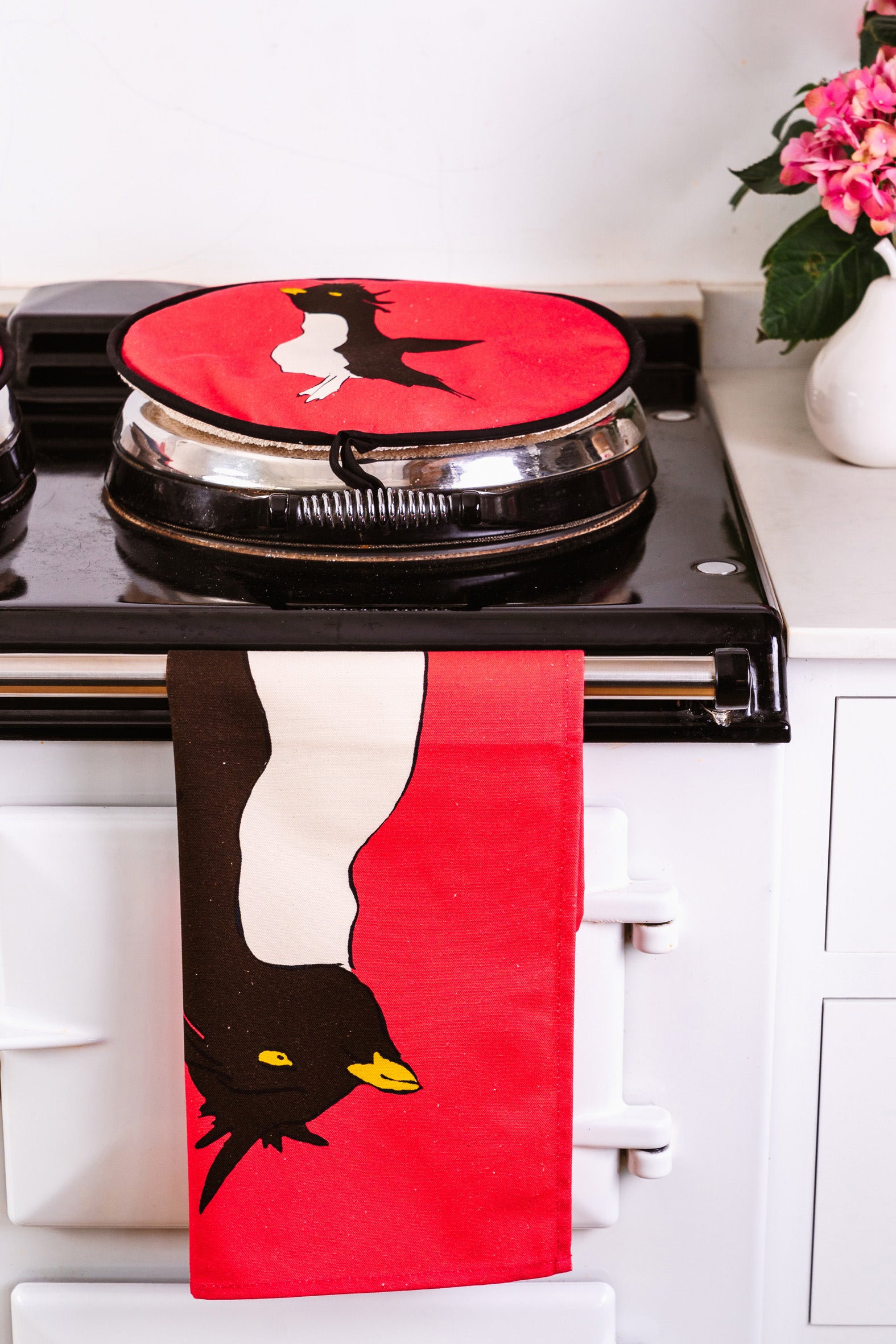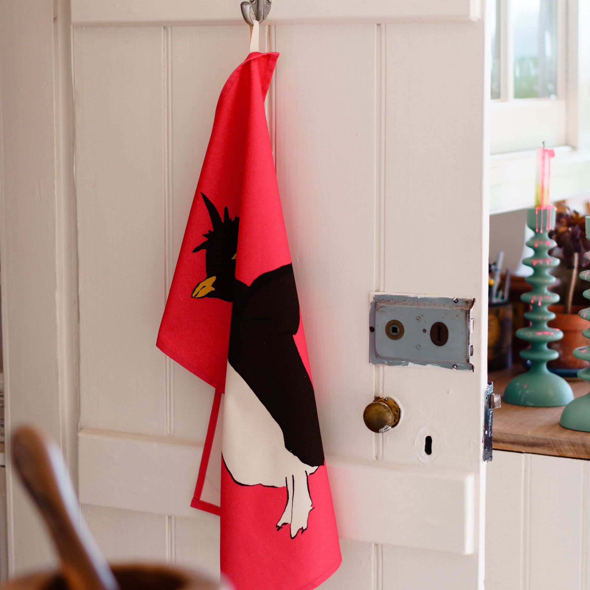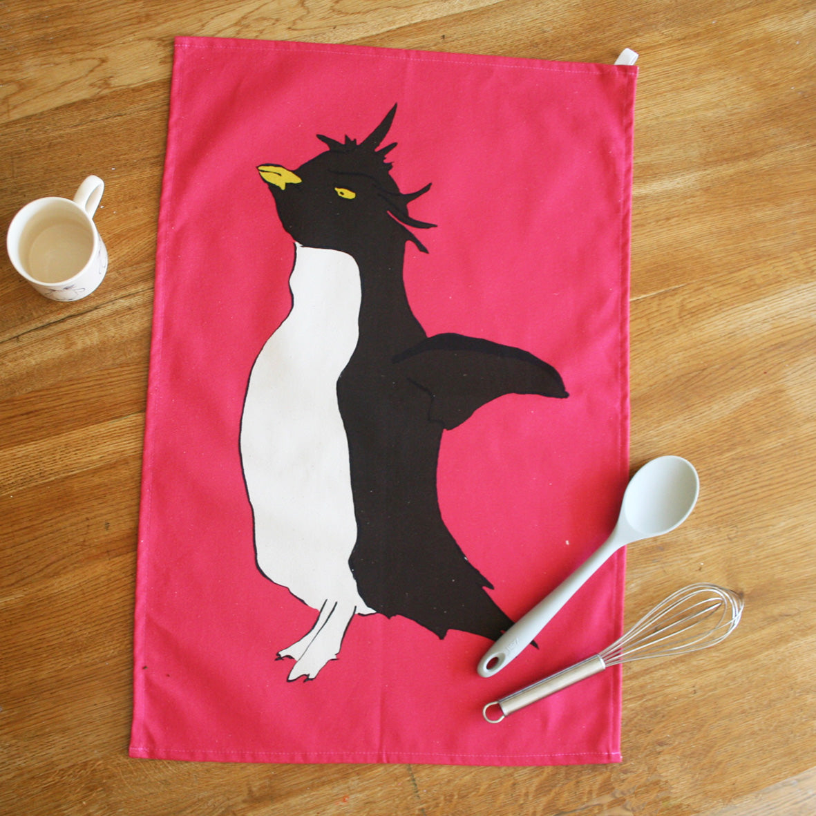 The Penguin tea towel with a shocking pink background is filled with fun! This Rockhopper Penguin brings plenty of smiles and full of brightness to cheer us up this year!