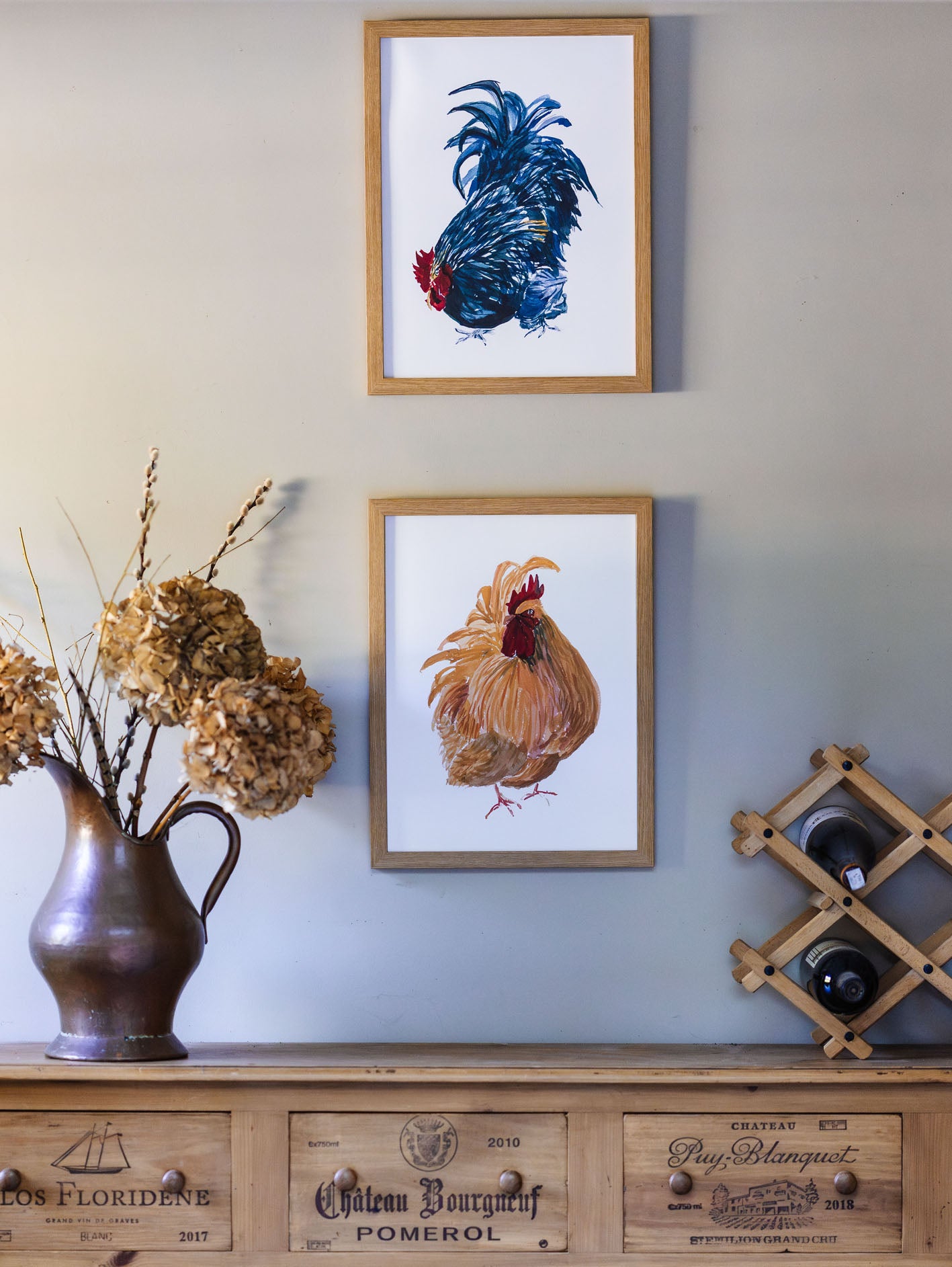 It is printed on to archival paper using high quality inks and are a superb reproduction of the the original painting. They are framed in an oak effect frame or a grey box frame both made from recycled polystyrene, making them very light to hang.