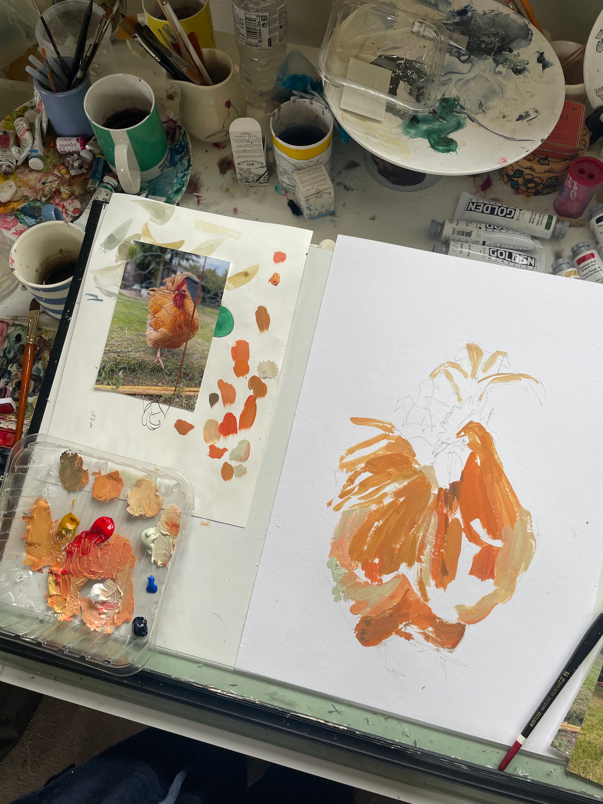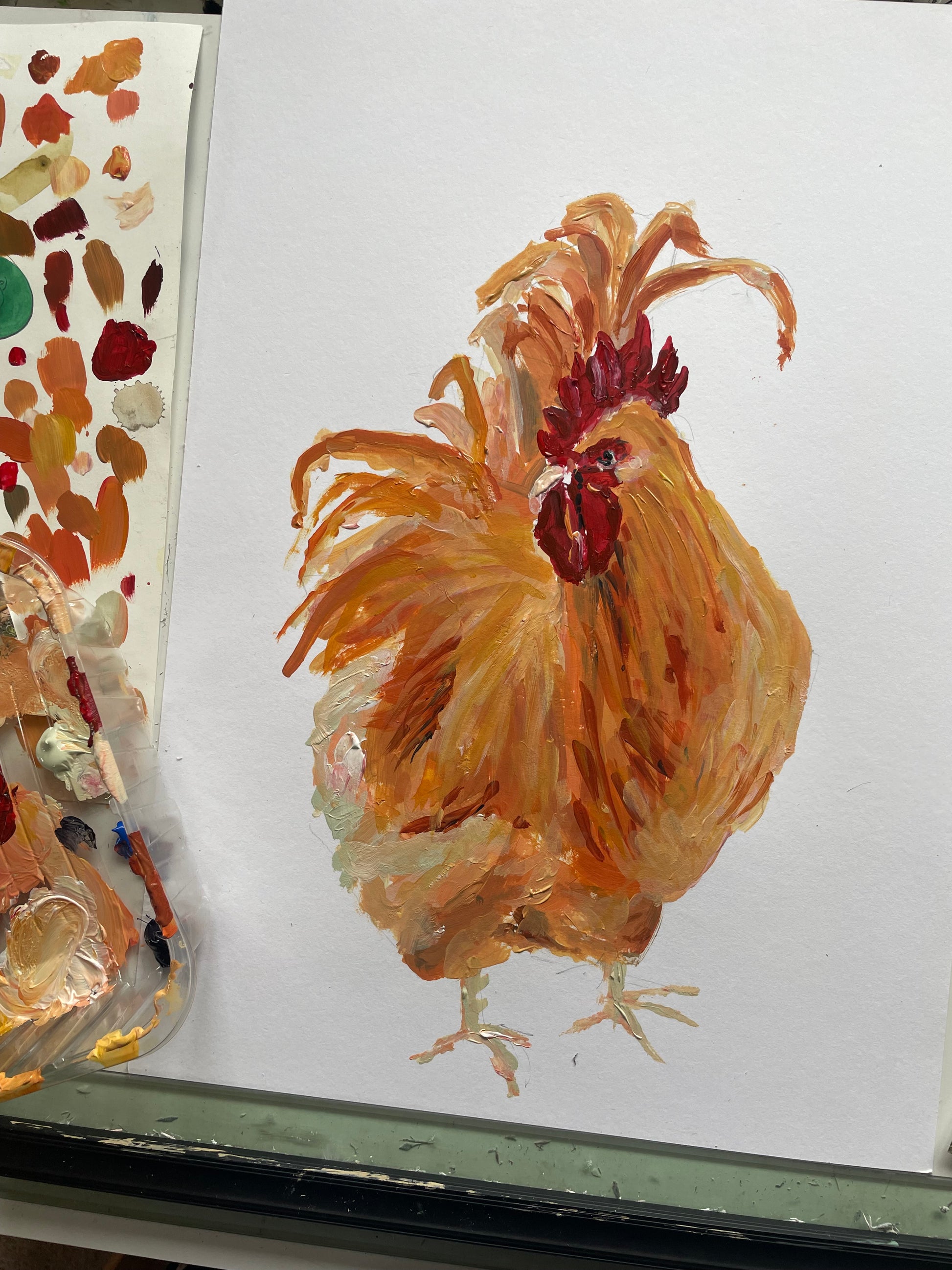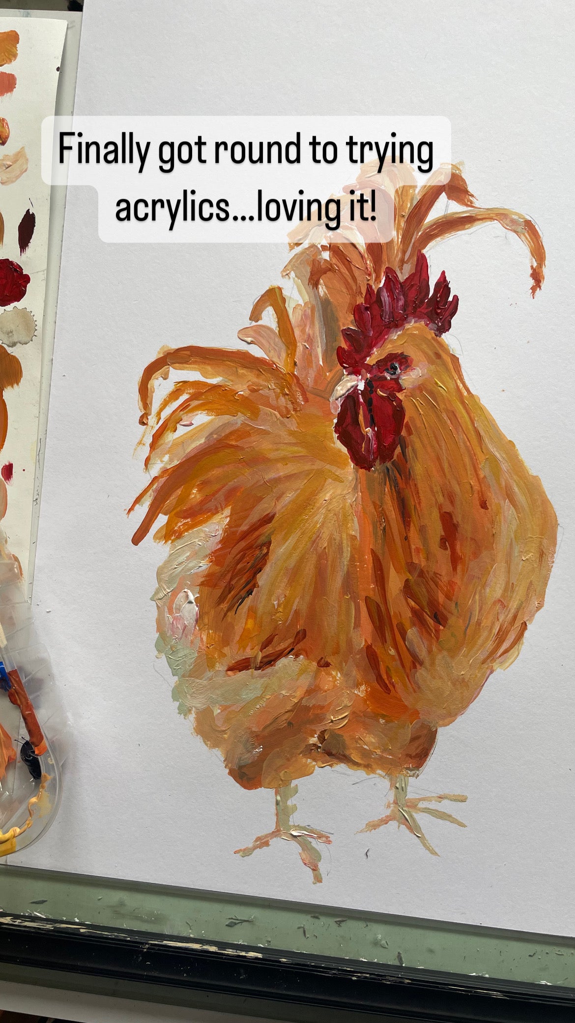 This is acrylic painting on paper is of a beautiful Orpington cockerel belonging to a close friend.