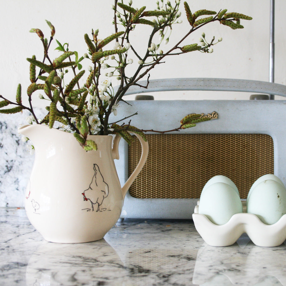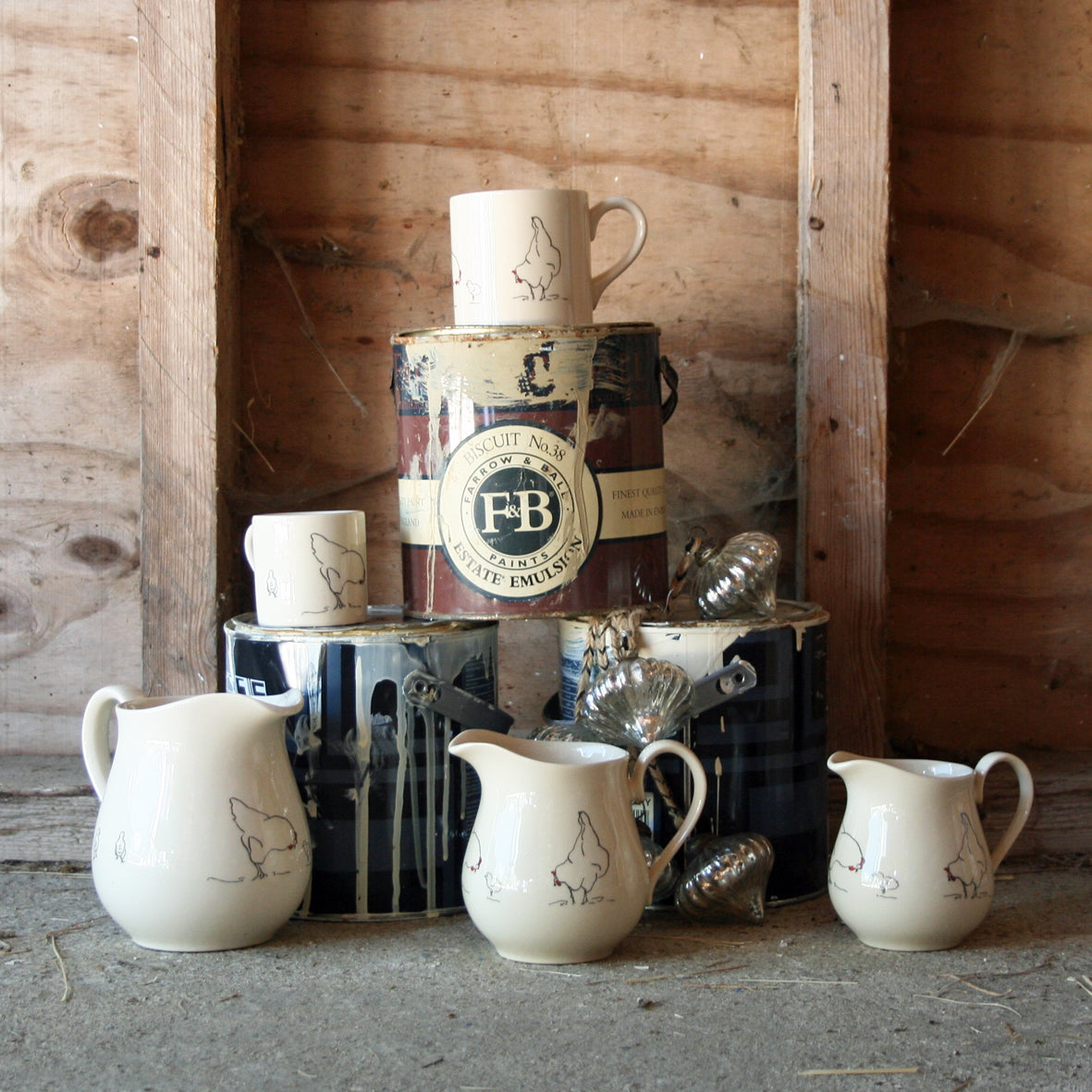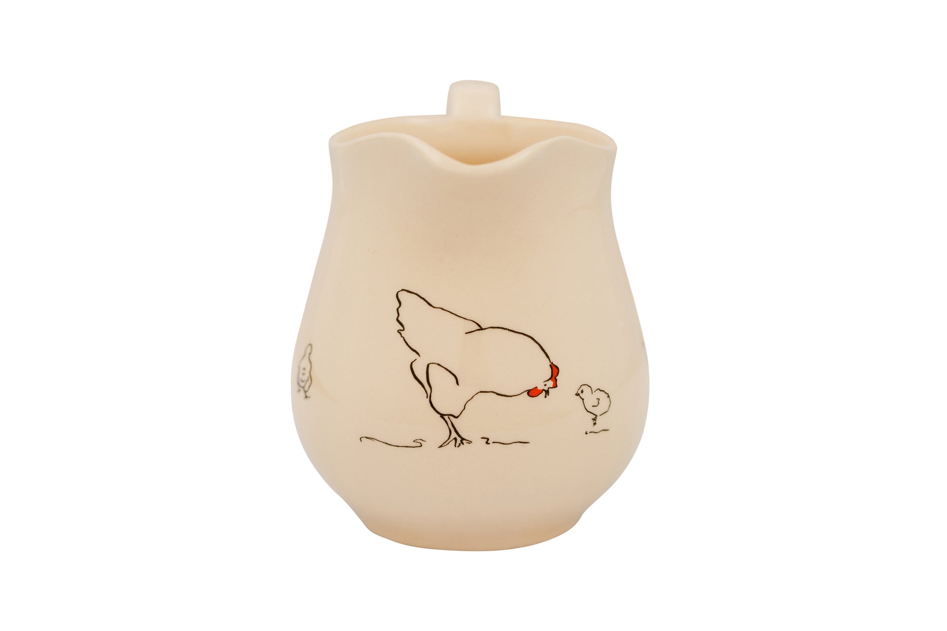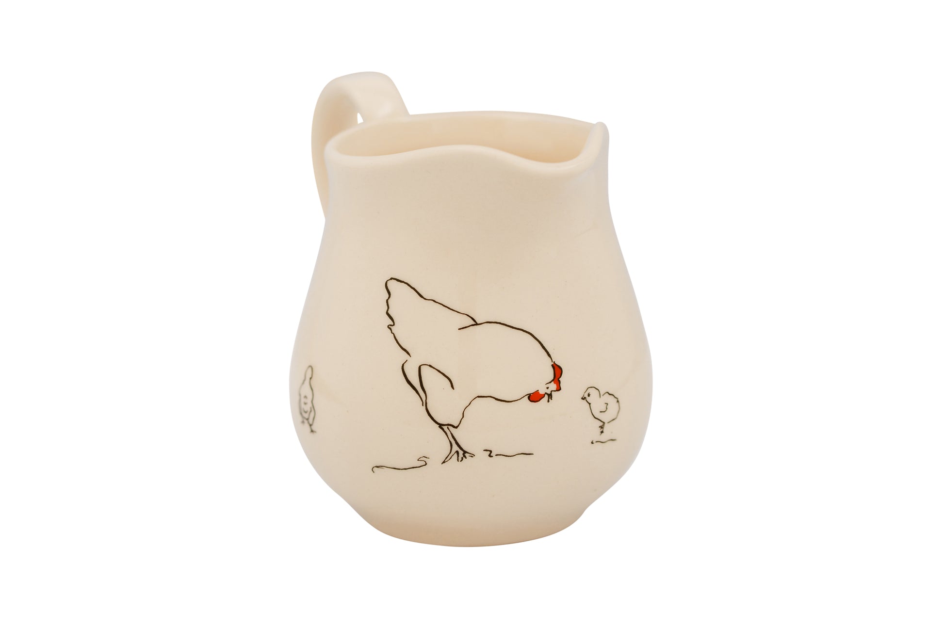 This pretty range of creamware jugs comes in a classic curved shape with hens and chicks chasing each other around.