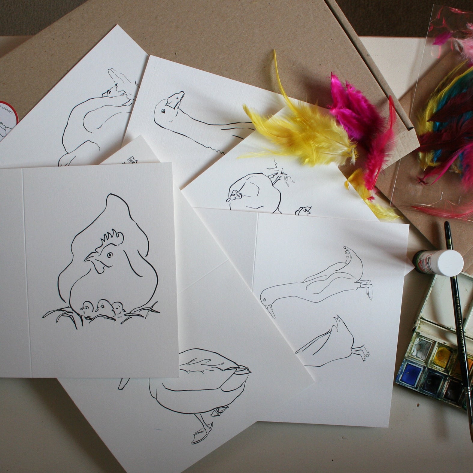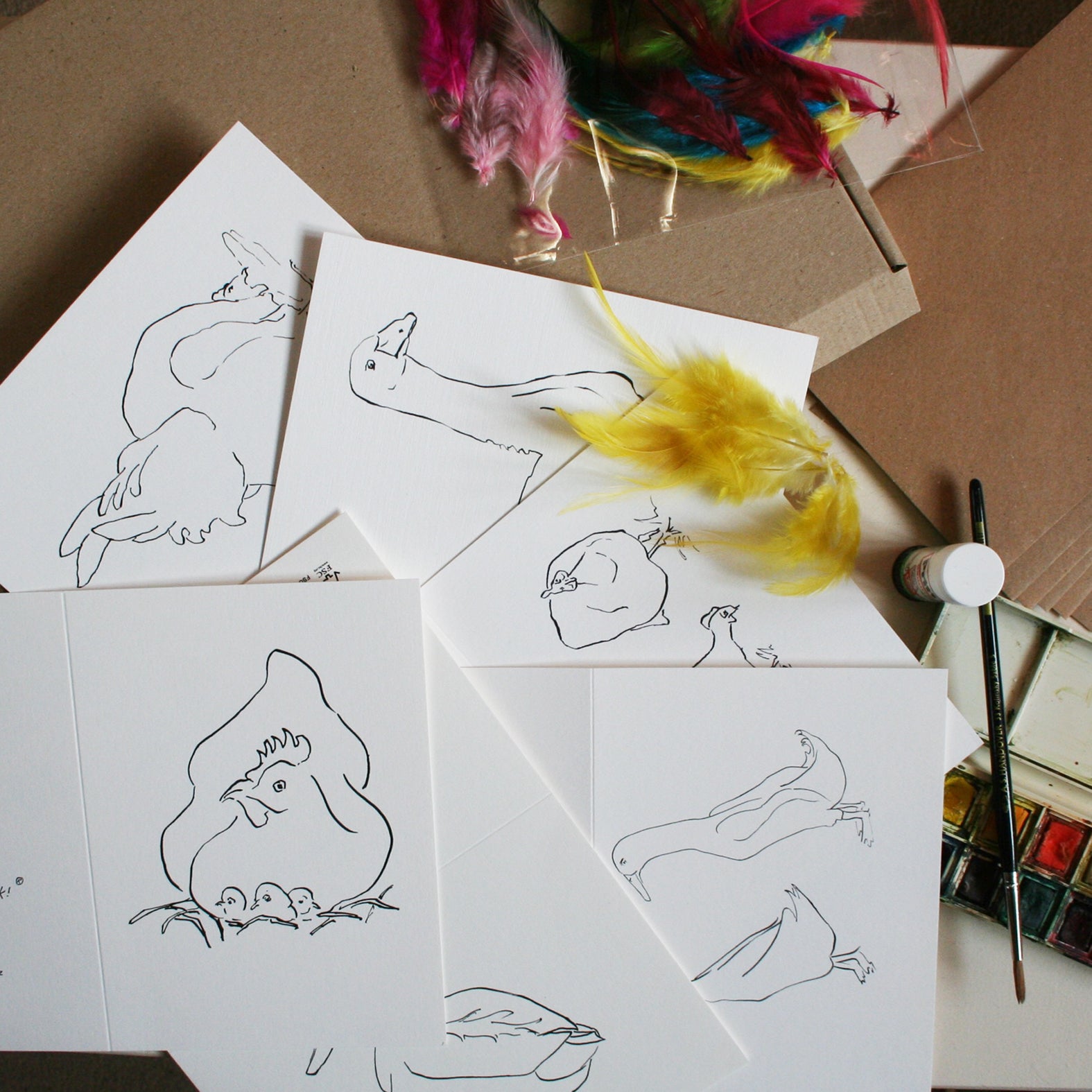 Farmyard - includes Chicks, Hen, duck, goose, guinea fowl & runner duck card.