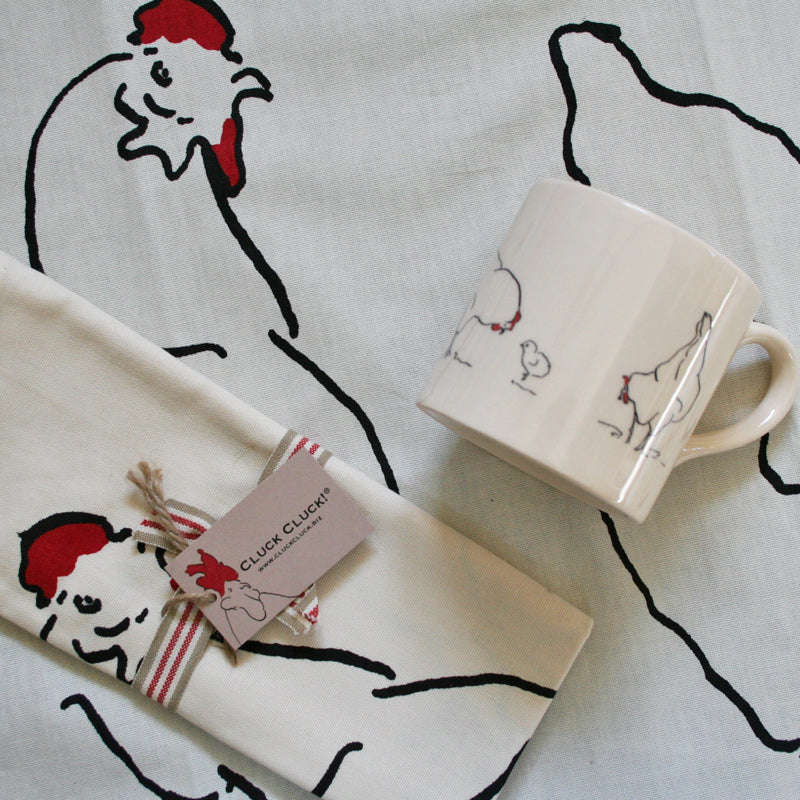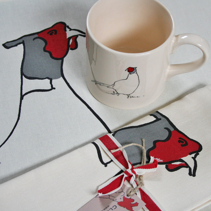 The mug & tea towel gift set comes in a kraft gift box which has two windows, one shows the mug and the other the tea towel with a cheeky eye peeping out!