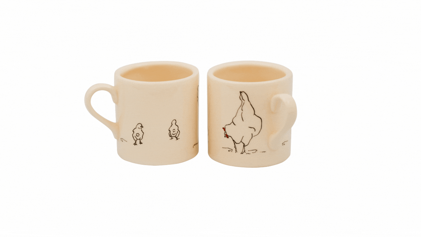 I am delighted to have received my wonderful chicken espresso cups and I am so happy with them!