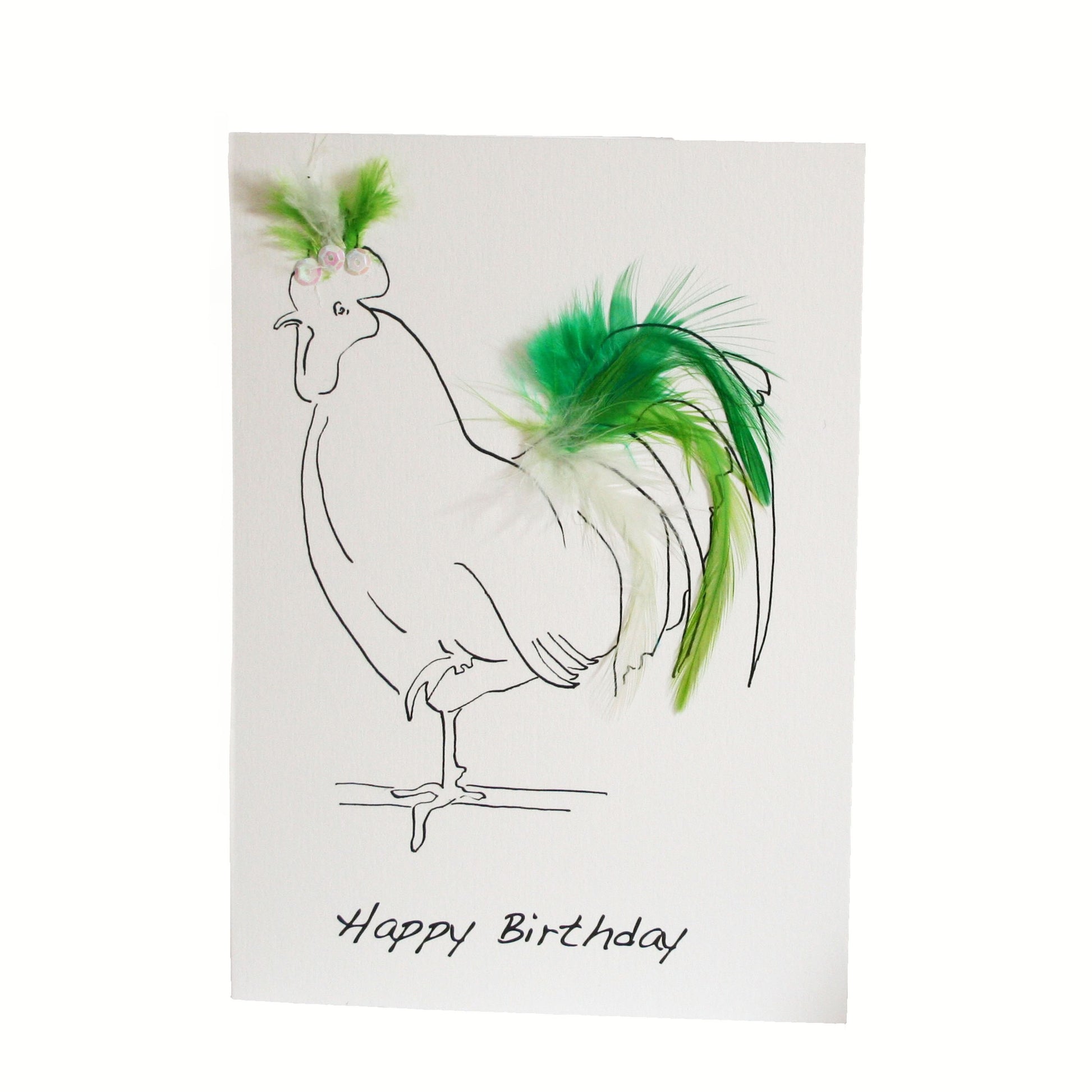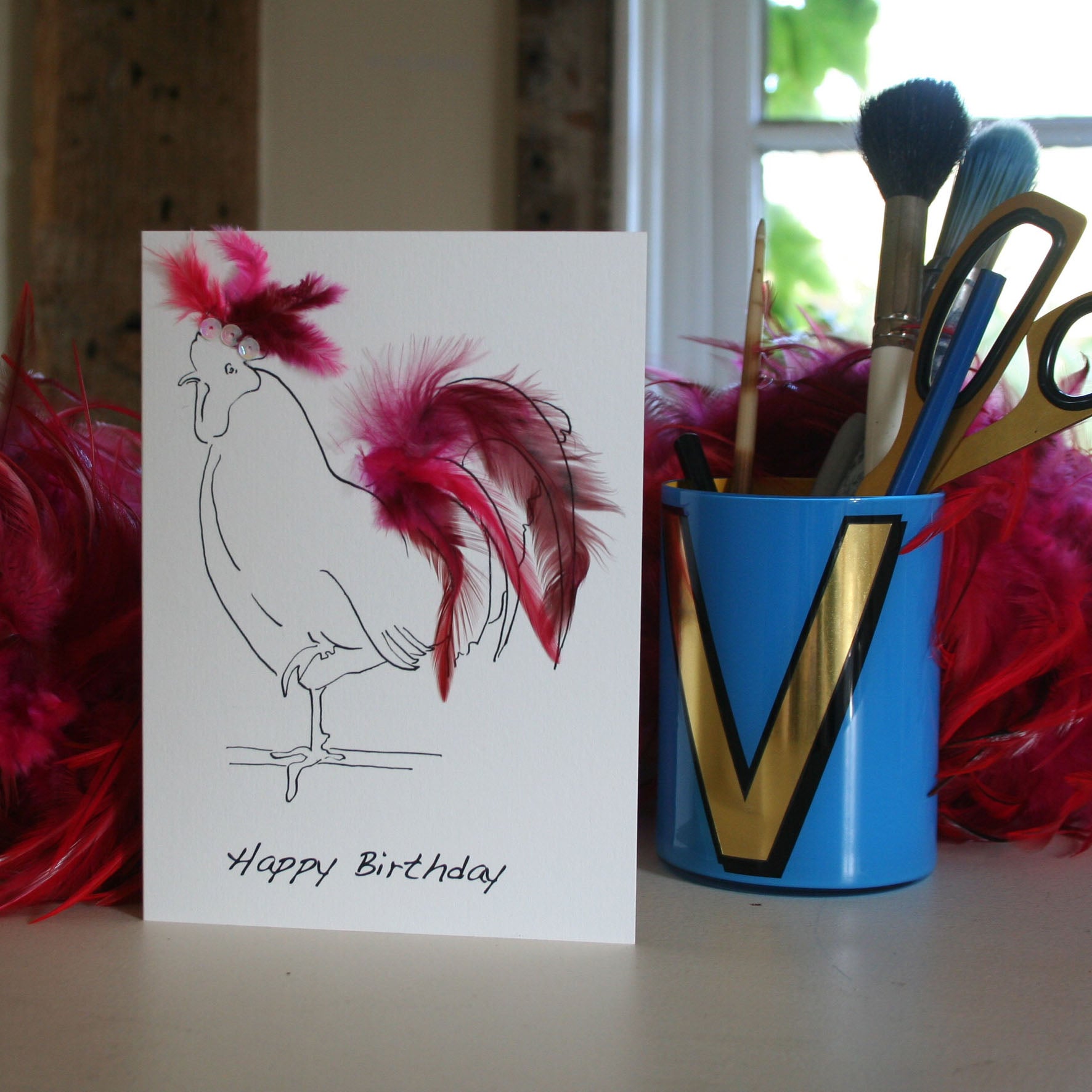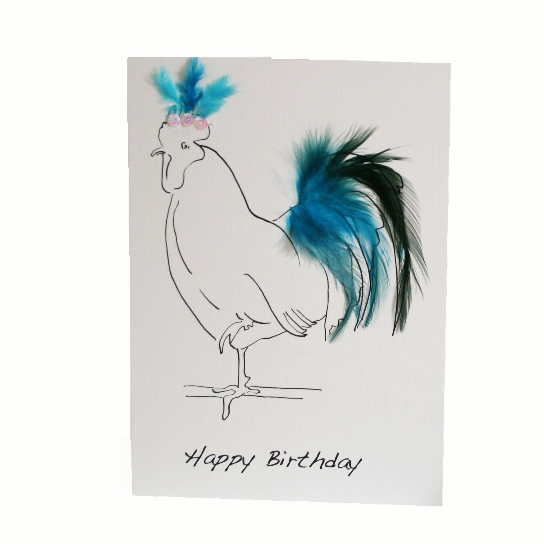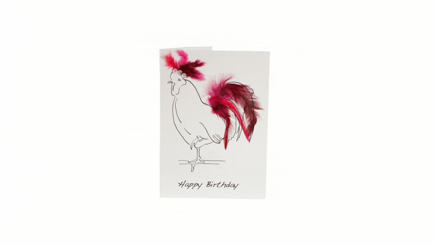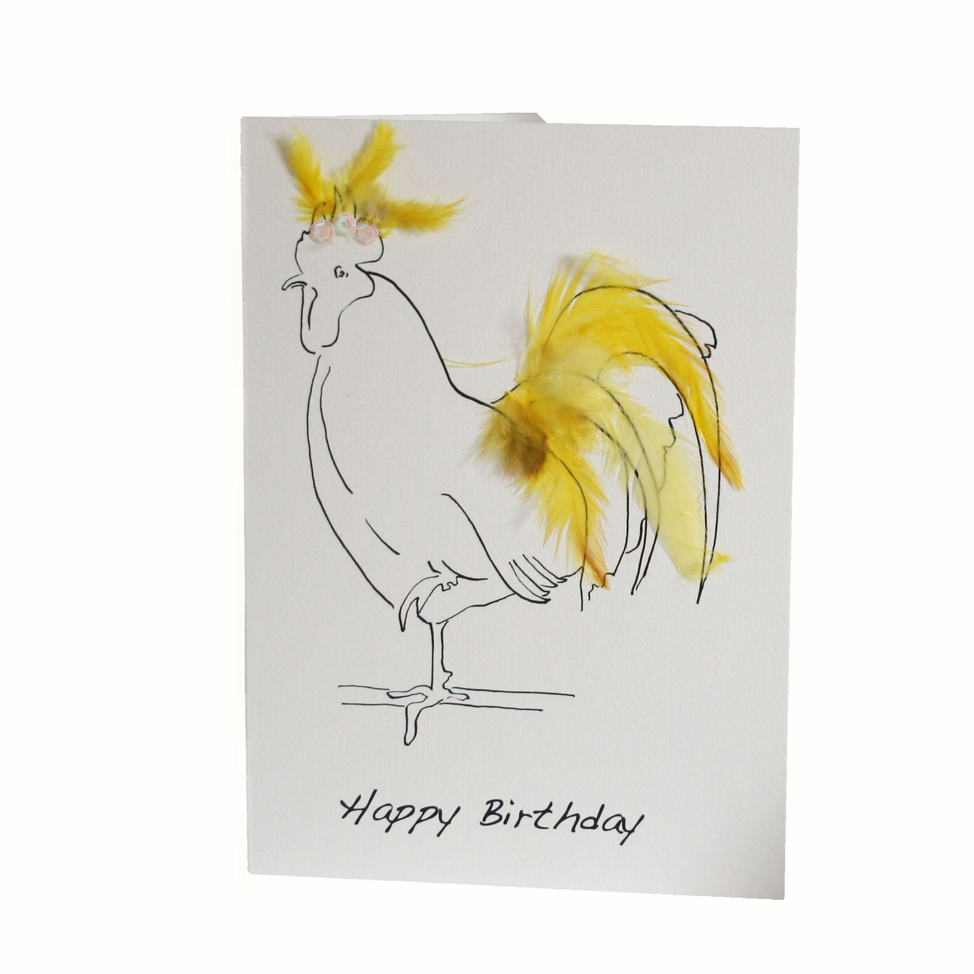 This set of bright coloured birthday cards come with a festive summer crown and a tail made up of a variety of different shades in feathers on the tail. The colour is painted by hand in watercolour to match.