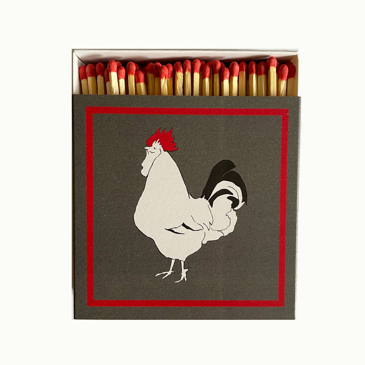 The Grey luxury matchboxes have an almost vintage feel with the matt finish on the card and red tipped matches. They have the design of the Sussex cockerel on the box