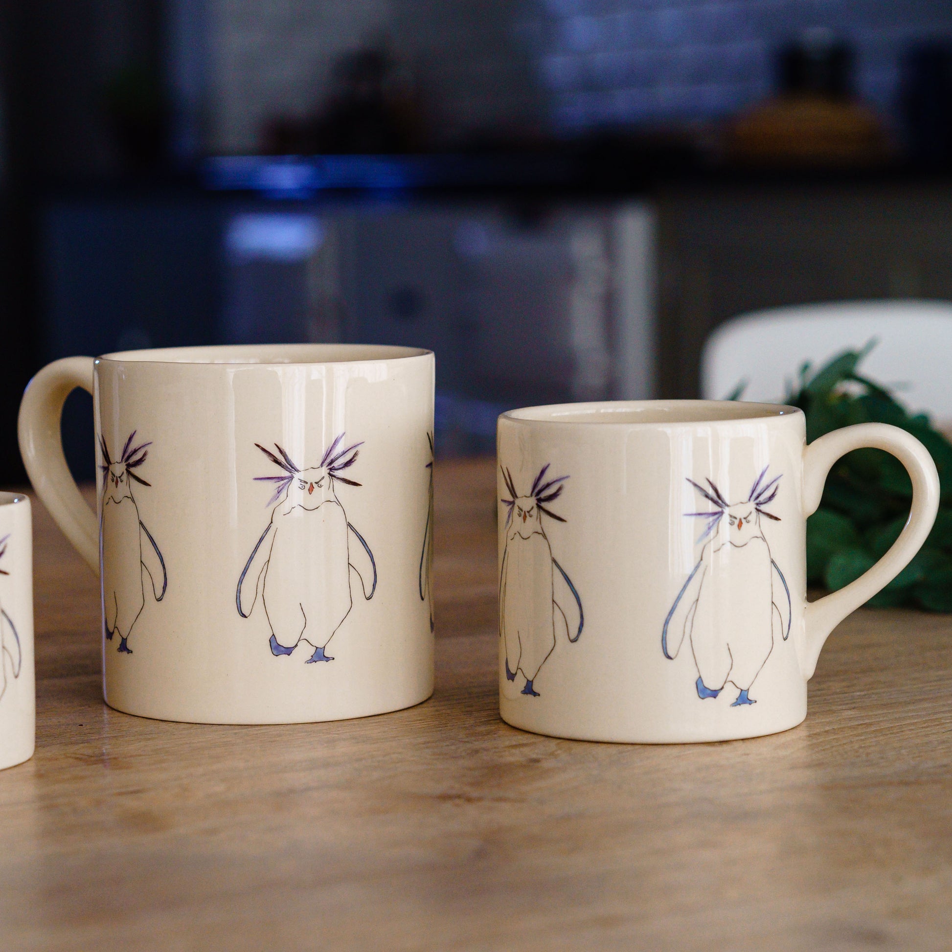 The creamware large mugs are available in four different designs featuring chickens, pheasants, Rocky the Rockhopper penguin and runner duck.