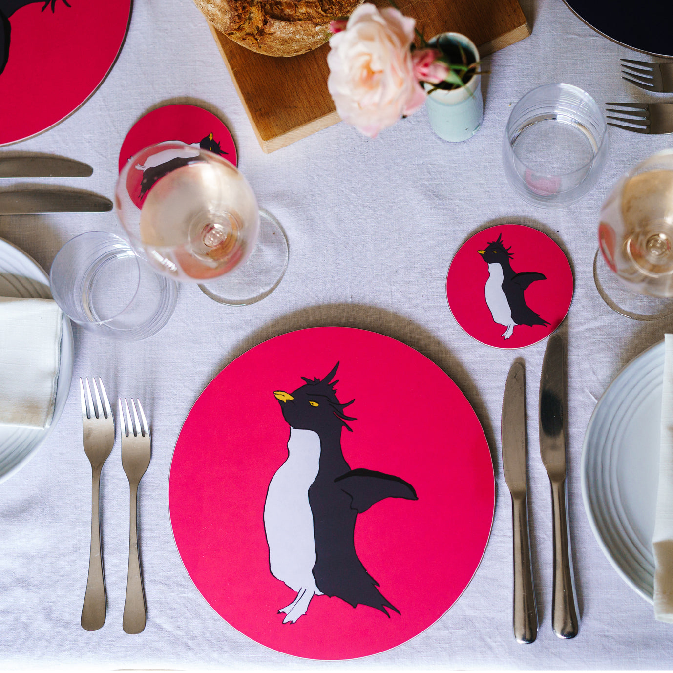 The Pink Penguin placemat are a glossy and gorgeous addition to any table.