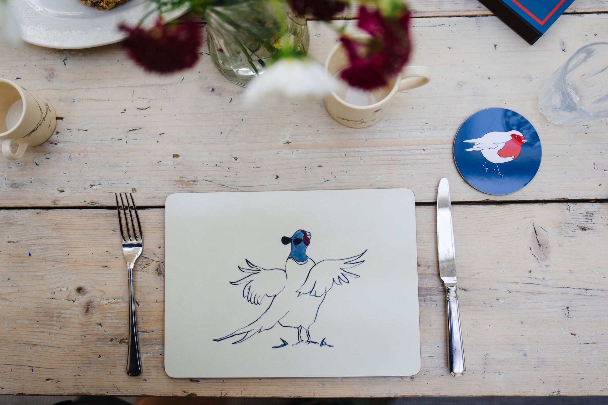 The set of four melamine pheasant placemats are rectangle with bevelled edge.