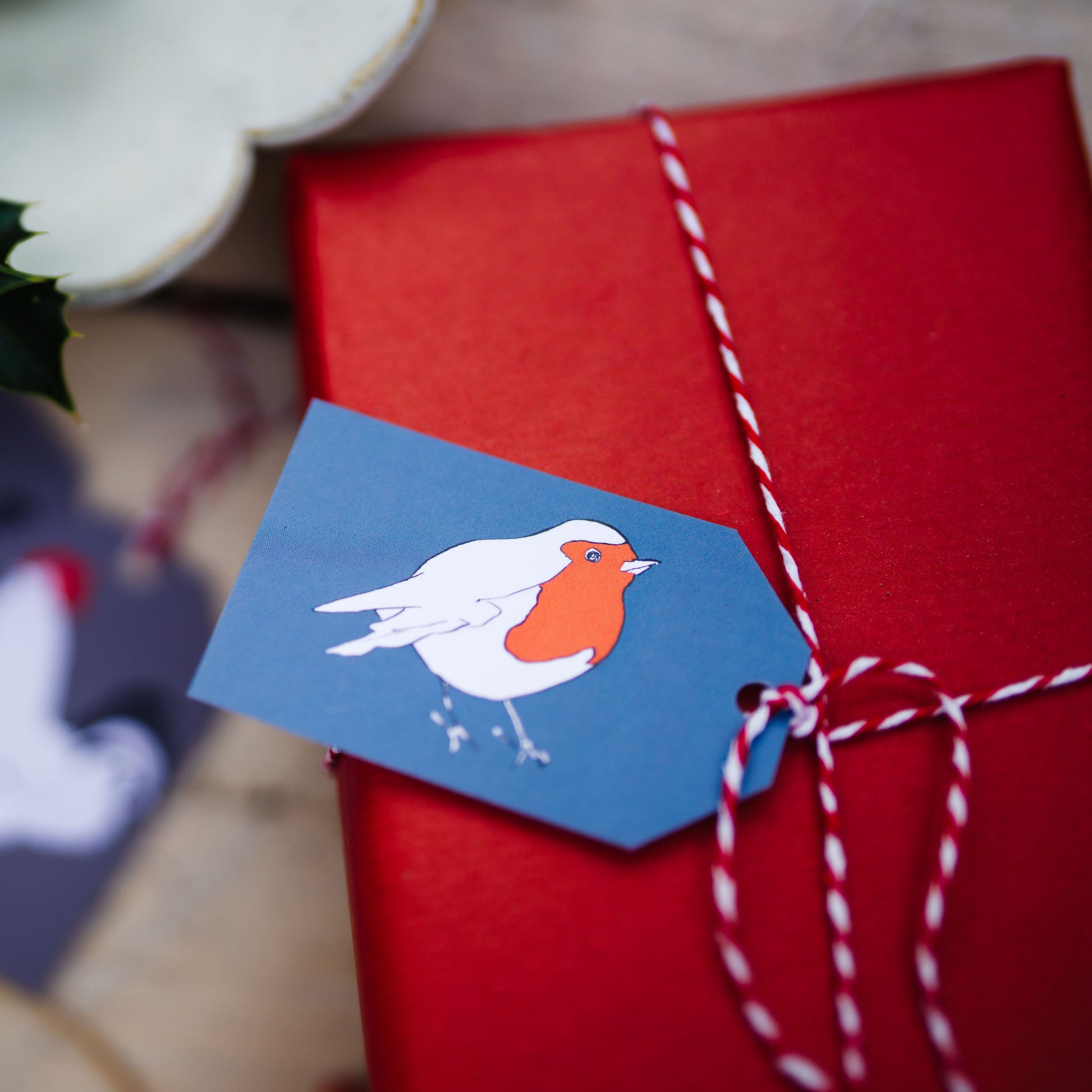 The pack of 6 Robin card gift tags come ready stung with twine to label your Christmas gifts.