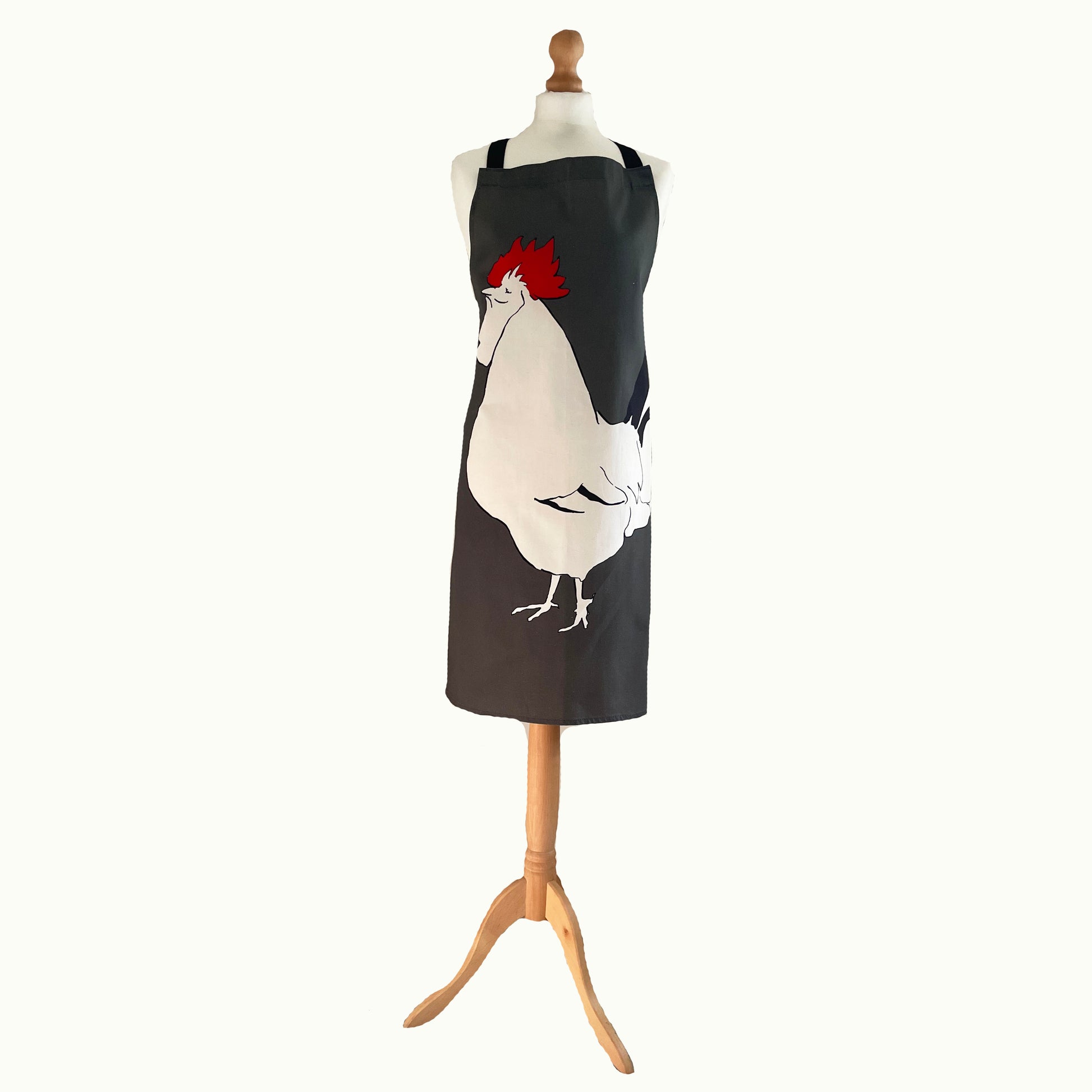 The Sussex Cockerel design comes in a standard size that fits all. It comes with black ties and a grey back ground, perfect gift for messy cooks!