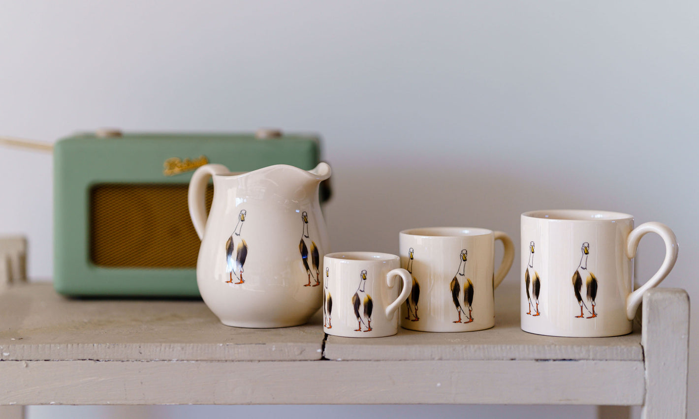 With coffee cups, mugs & jugs to complement the bird themed range, something for everyone. All products made in the UK & designed by artist Victoria Hall.